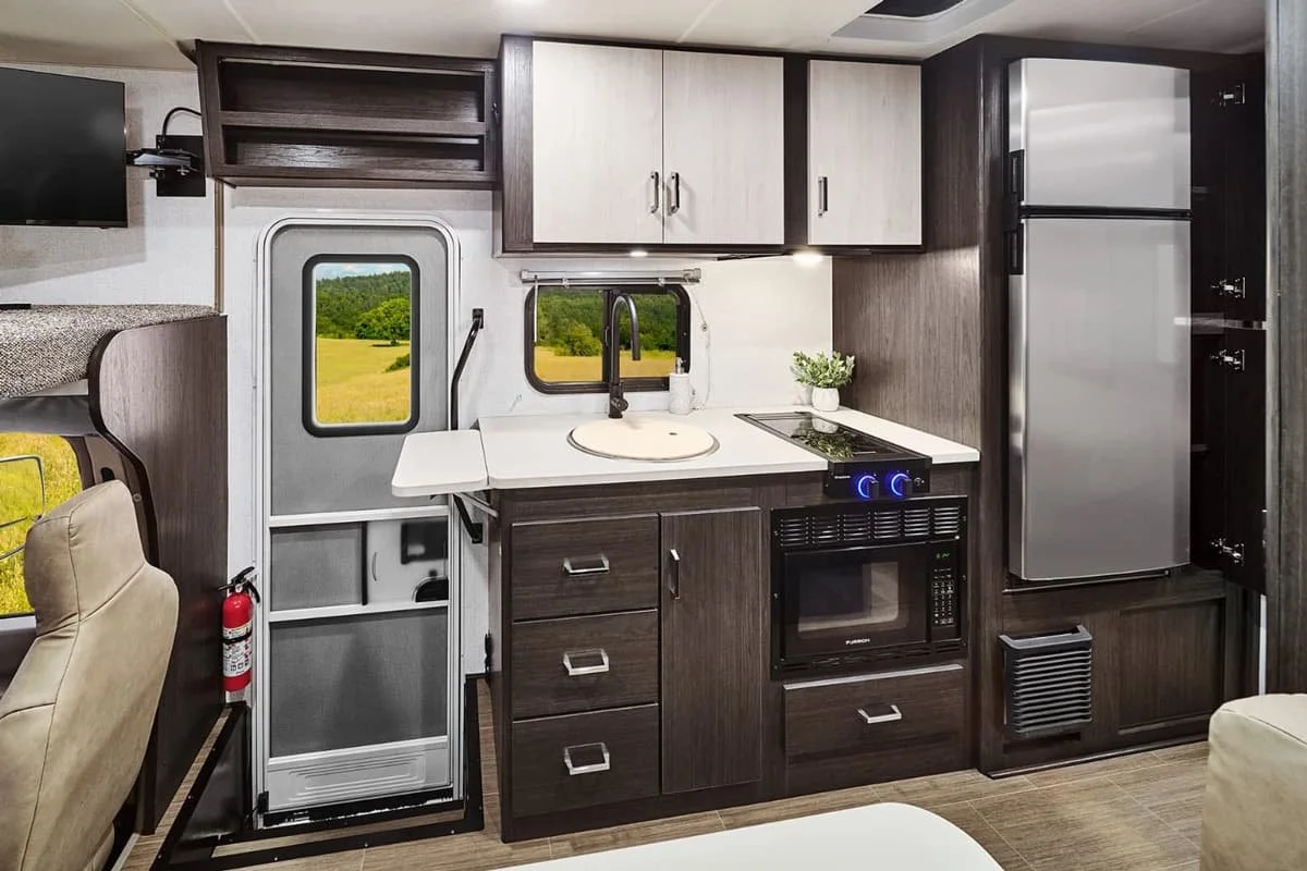 With plenty of living space and dedicated sleeping areas, the Winnebago Sunflyer 24GG has the amenities of a larger motorhome with the maneuverability of a mid-size RV. You’ll navigate narrow National Park roads smoothly and pull into tight parking spots with ease.